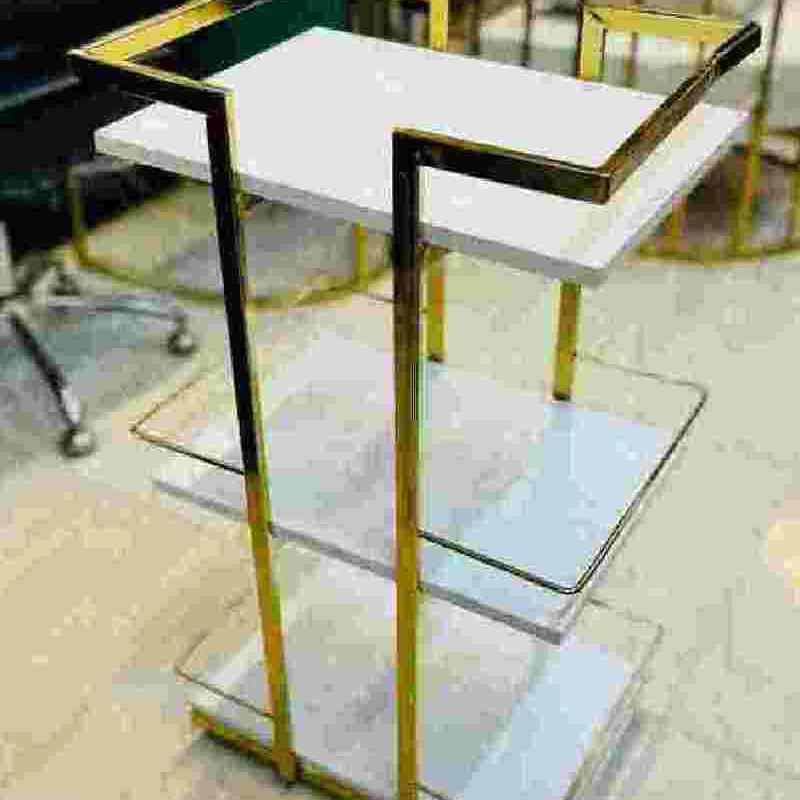 ترولی پزشکی فلزی فورتیک طبقه ای پایه طلایی دررنگ بندی طبقه سفید ومشکی هزینه ارسال به پای مشتری میباشد