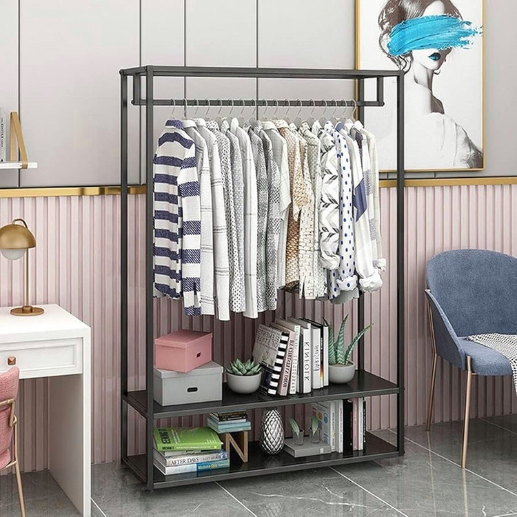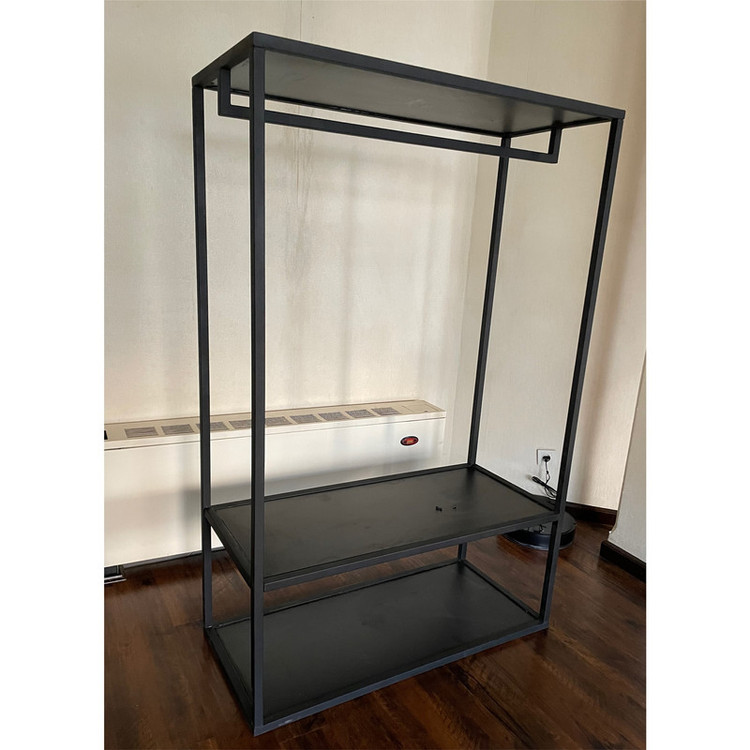 رگال لباس مدل طبقه دار فلزی با استفاده از طراحی خاص و بدون یراق باعث شده تا مشکل جابجایی رگال لباس خود را نداشته باشید. نگرانی بعدیای که در خرید رگال وجود دارد استحکام و تحمل وزن سنگین لباس است اما این رگال با استفاده از فلز مناسب و طراحی دقیق باعث میشود که سنگینترین لباسها به راحتی بر روی آن قرار بگیرند. استفاده از 3 طبقه مجزا mdf برای انواع وسایل مثل کفش، کتاب، کیف و.. باعث شده تا بتوان از این رگال به عنوان یک کمد همه کاره استفاده کرد و هیچ نگرانی برای مدیریت کردن یا مرتب کردن وسایل وجود نداشته باشد. پروفیل فلزی این رگال و رنگ خاص مشکی مات آن جلوهای مینیمال و مدرن به فضای خانه و یا محل کار شما میبخشد تا هیچوقت نگران طراحی داخلی نباشید. این رگال قابل استفاده در اتاق، خانه، مزون و... میباشد. این رگال برای افرادی که می خواهند از فضای کمی که دارند بهترین استفاده را بکنند و زیبایی هم برای آن ها اهمیت دارد مناسب است.
