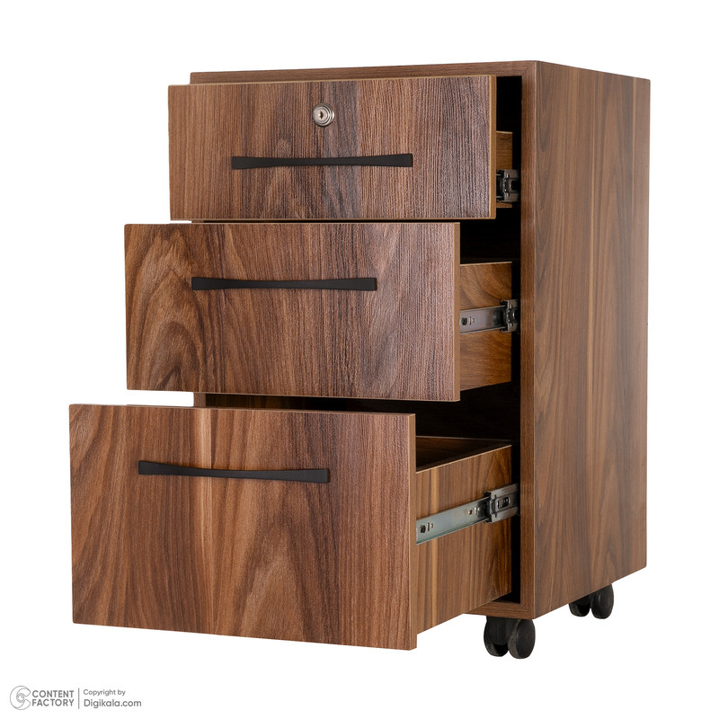 : نگهداری اسناد و مدارک - مناسب برای کارمندان و مدیران اداری و شرکتی - مناسب برای ادارات و شرکت ها - دارای سه کشو و یک کشو قفل دار - تمام قسمت های چوبی از ام دی اف - دارای 4 چرخ برای جابجایی راحت