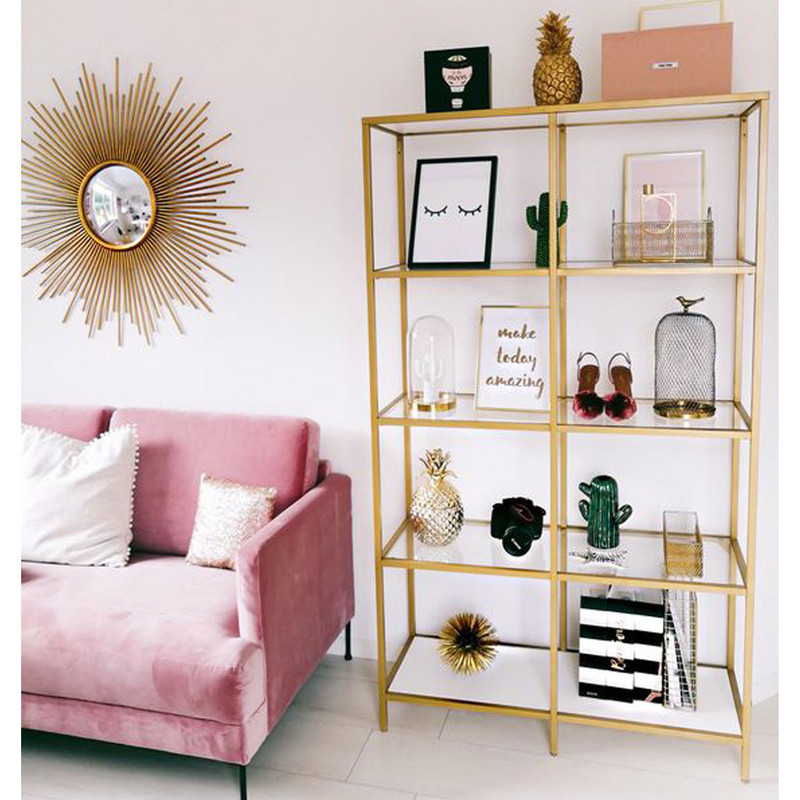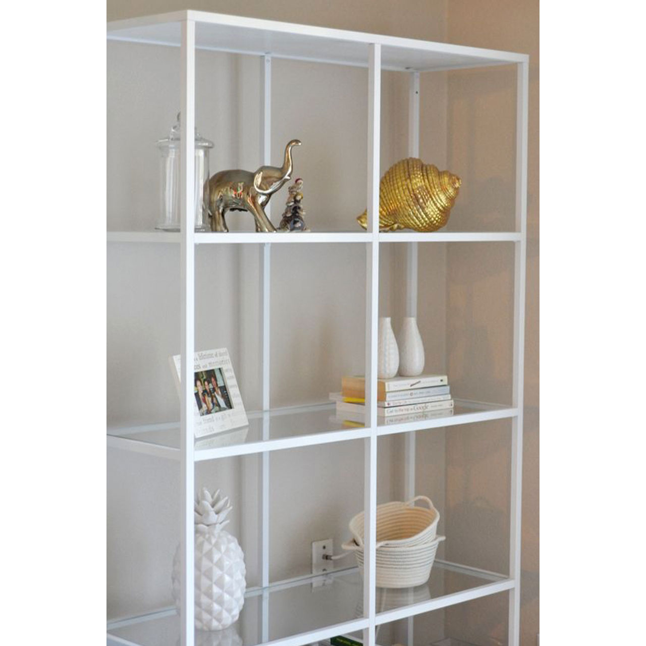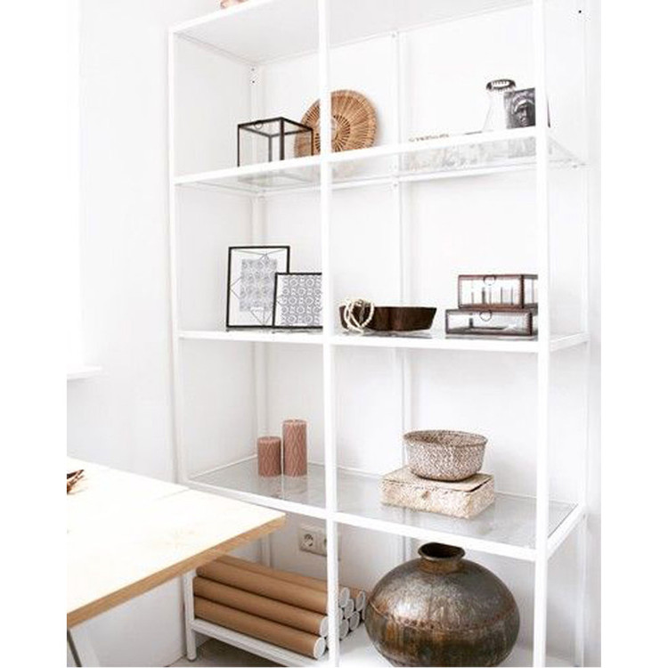 رنگ فریم فلزی متغیر است. ( الکترواستاتیک کوره ای) جنس صفحات بالایی و پایینی MDF روکشدار سفید است و جنس صفحات میانی (3صفحه) شیشه ساده و شفاف است.