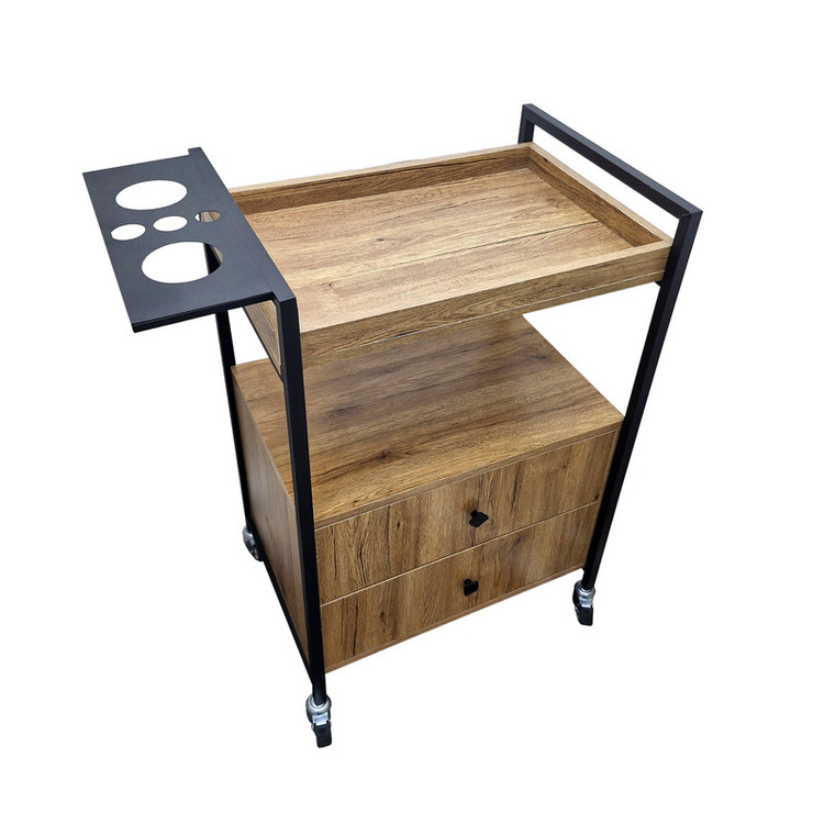 ترولی آرایشگاهی به منظور نگهداری ابزار آرایش میباشد تا آرایشگر در زمان کار بتواند تمام ابزار را در اختیار خود داشته باشدو می تواند محل نگهداری سشوار، انواع قیچیها، شانهها، ماشین های اصلاح و... باشد تا نظمی کامل را به محل کار آرایشگر بدهد. ساختار مستحکم و چهار چرخ ترولی باعث می شود تا بتوانید آن را به راحتی جابجا کنید و از آن در هر کجا که دوست دارید استفاده کنید. لازم به ذکر است این سبک از ترولی ها همه کاره بوده و برای مکان هایی نظیر کلینک ها، درمانگاه ها، کافه ها، رستوران ها و حتی خانه کاربردی هستند.چوب مورد استفاده MDF با کیفیت در رنگ های متنوع بوده و در کنار بدنه فلزی مشکی رنگ و کشوهای تعبیه شده محصول زیبایی خلق شده است و همچنین دارای استند تجهیزات آرایشی می باشد که می توان تجهیزاتی از قبیل سشوار و اتوی مو و ... را در محل مناسب خود قرار داد.