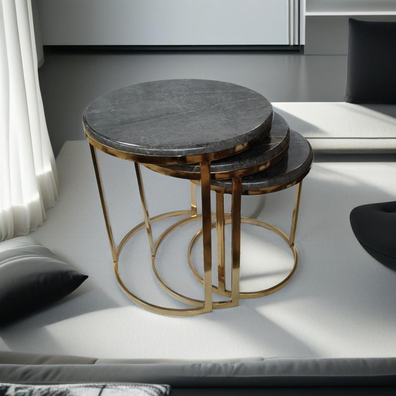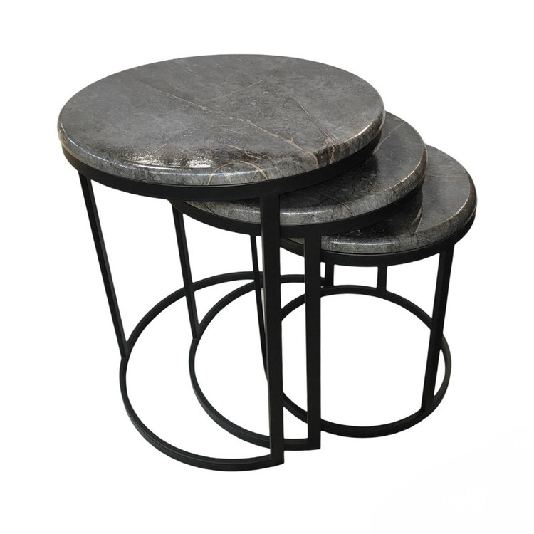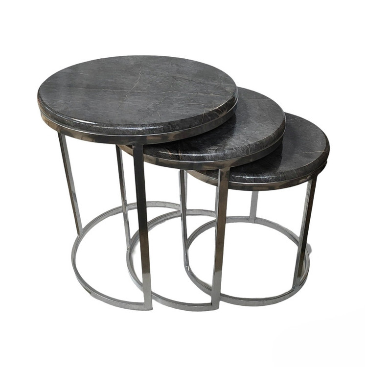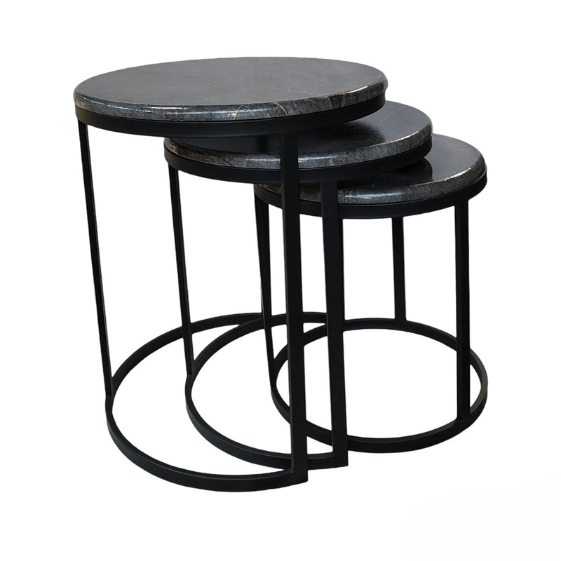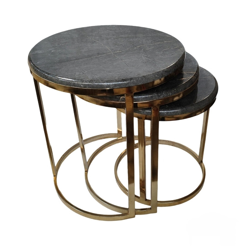 میز جلومبلی سه عددی که به راحتی در زیر یکدیگر قرار میگیرند و فضای کمی اشغال میکنند. پایه از جنس آهن آبکاری شده و براق است. همچنین جنس صفحه ام دی اف با روکش وکیوم میباشد. ابعاد میز کوچک دایره 35 و ارتفاع 38 میباشد. ابعاد میز متوسط دایره 40 و ارتفاع 44 میباشد. ابعاد میز بزرگ دایره 45 و ارتفاع 50 میباشد.