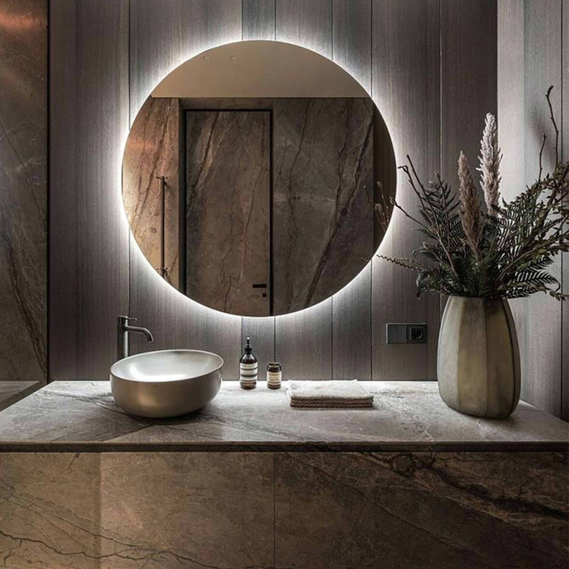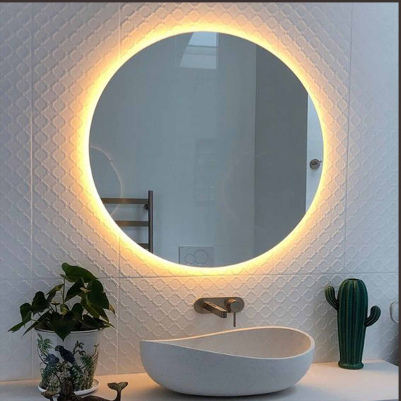 دور آینه کاملا صاف و صیقلی پشت آینه کاملا با MDF کاور شده LED کم مصرف با طول عمر بالا نصب آسان با فیتینگ دیواری آینه سوپرکلییر 4 میل
